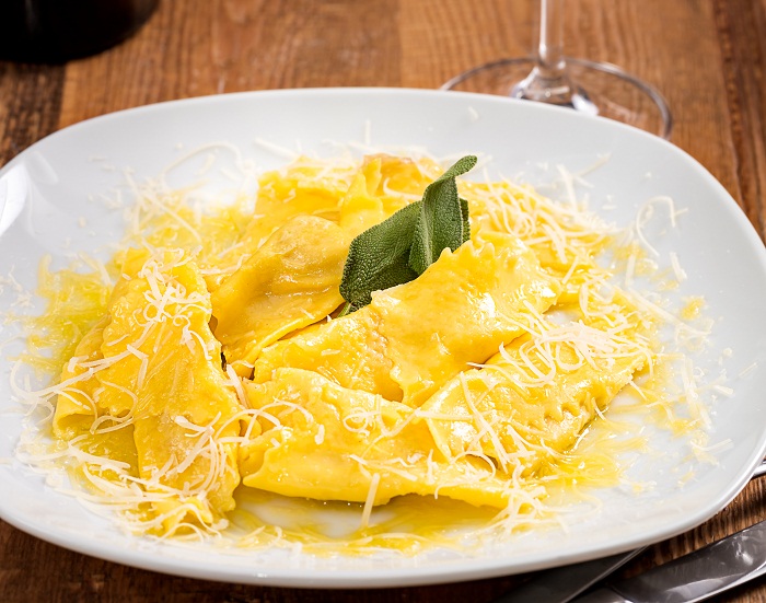 paste umplute cu branza si pesmet, facute in casa si gatite intr-o combinatie de unt si salvie ( 200 g)